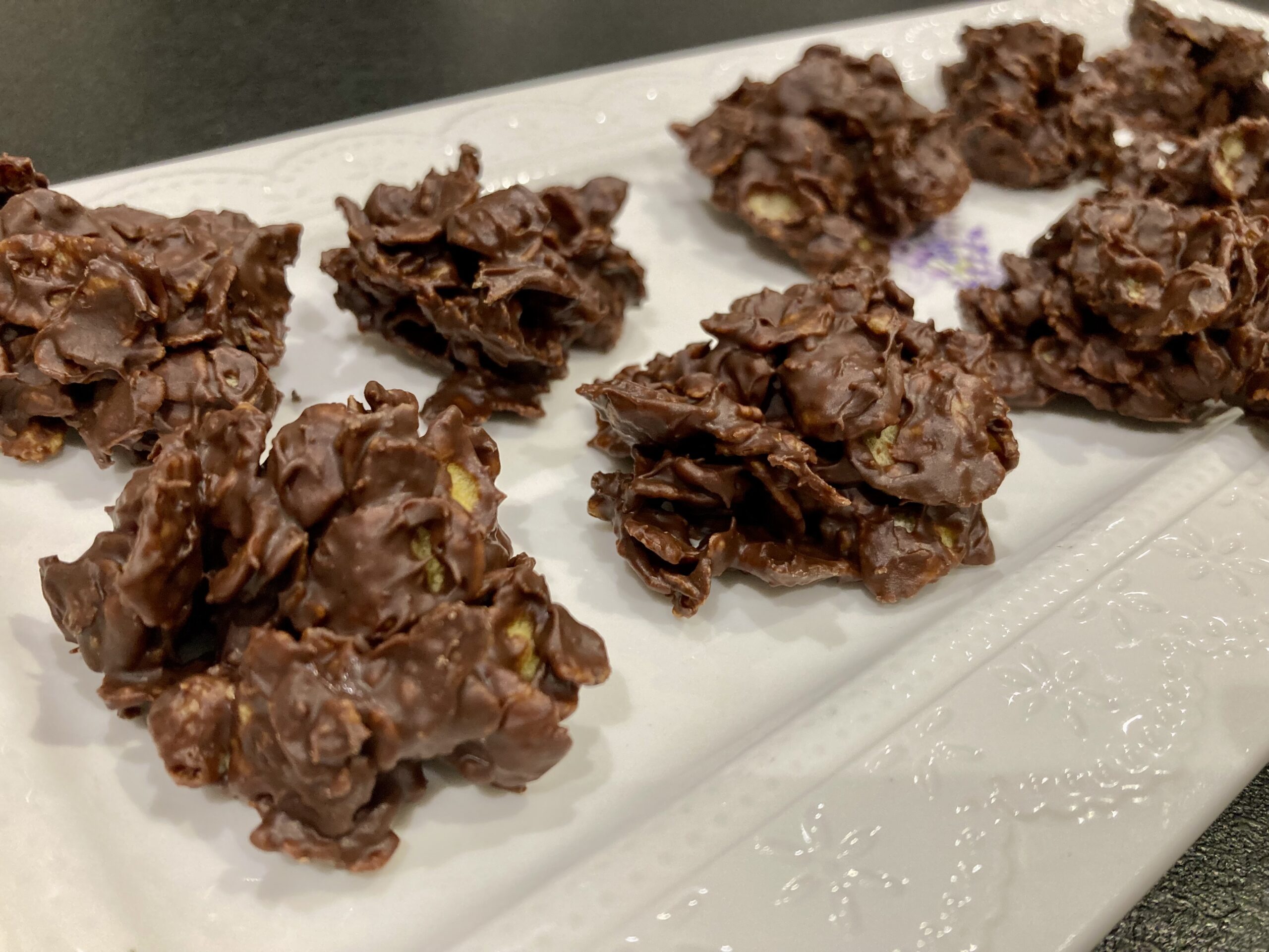 100g de pétales de mais non sucré (réduire à 80g si vous utilisez du chocolat blanc)