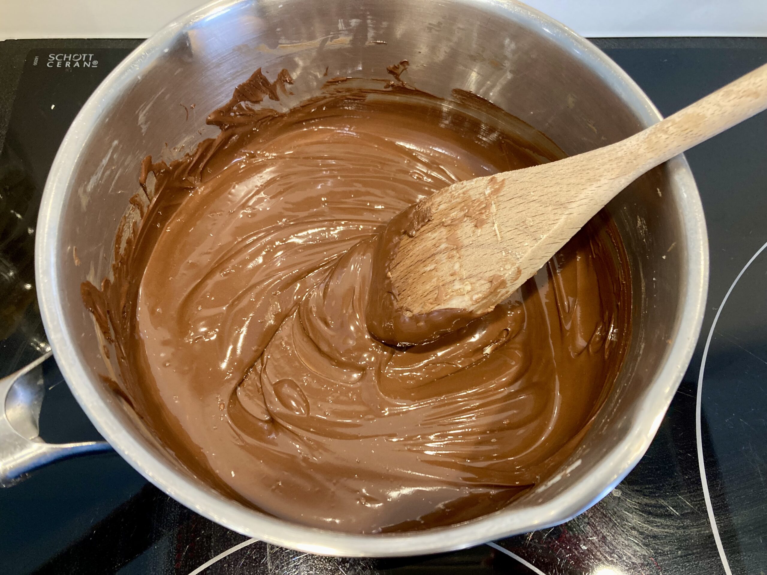 1. Dans une casserole (de taille suffisamment grande pour ajouter ensuite les pétales de mais) faire fondre le chocolat sur feu doux.