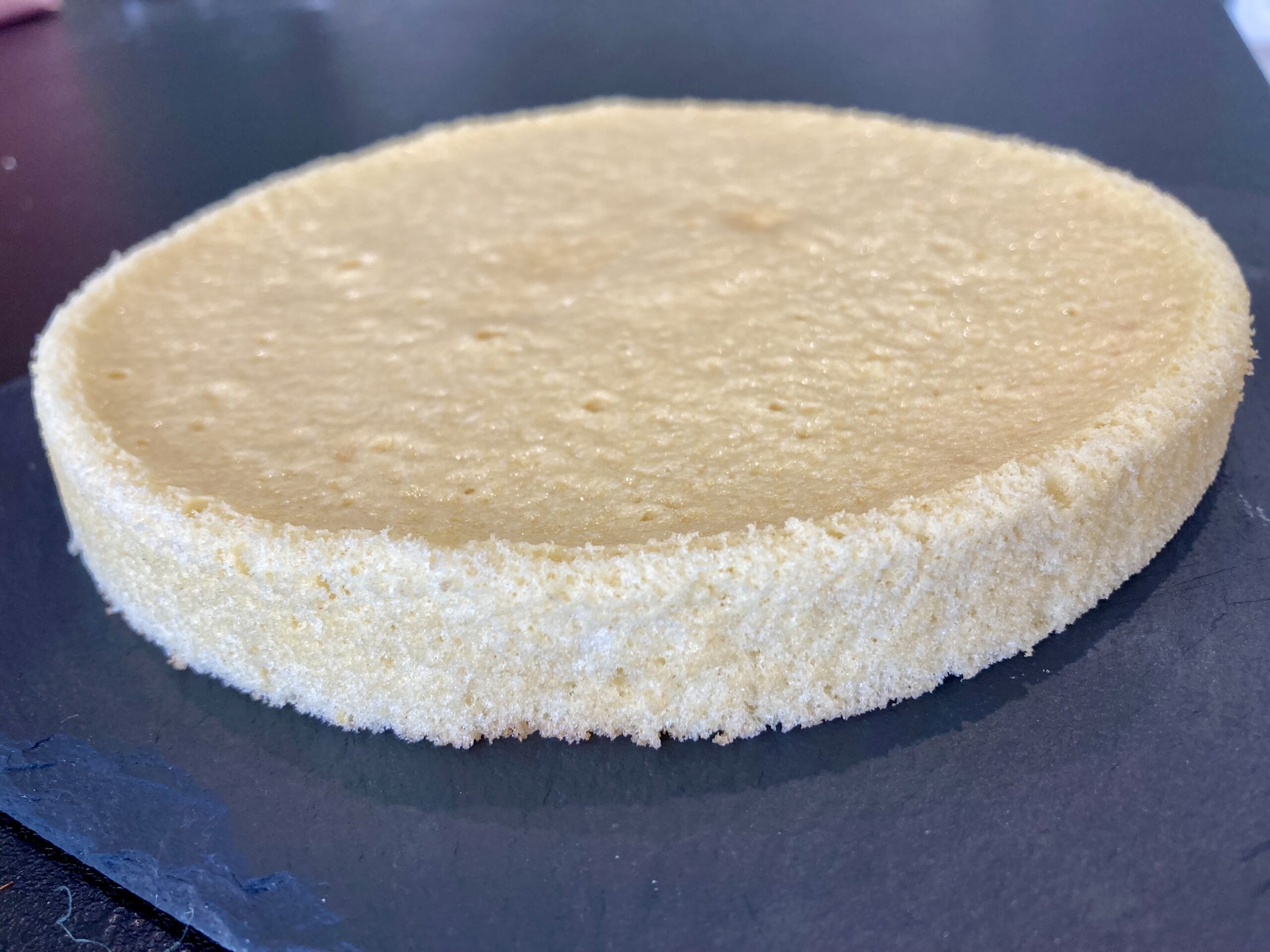1.Réalisez votre génoise avec les proportions indiquées dans la rubrique ingrédients. Pour voir la recette cliquez ici.