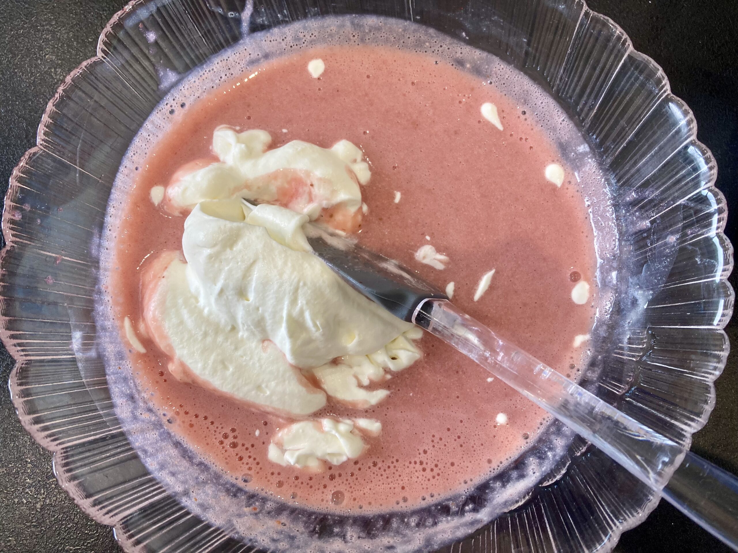 • Ajoutez le reste de la chantilly et mélangez délicatement avec une maryse.mousse à la fraise