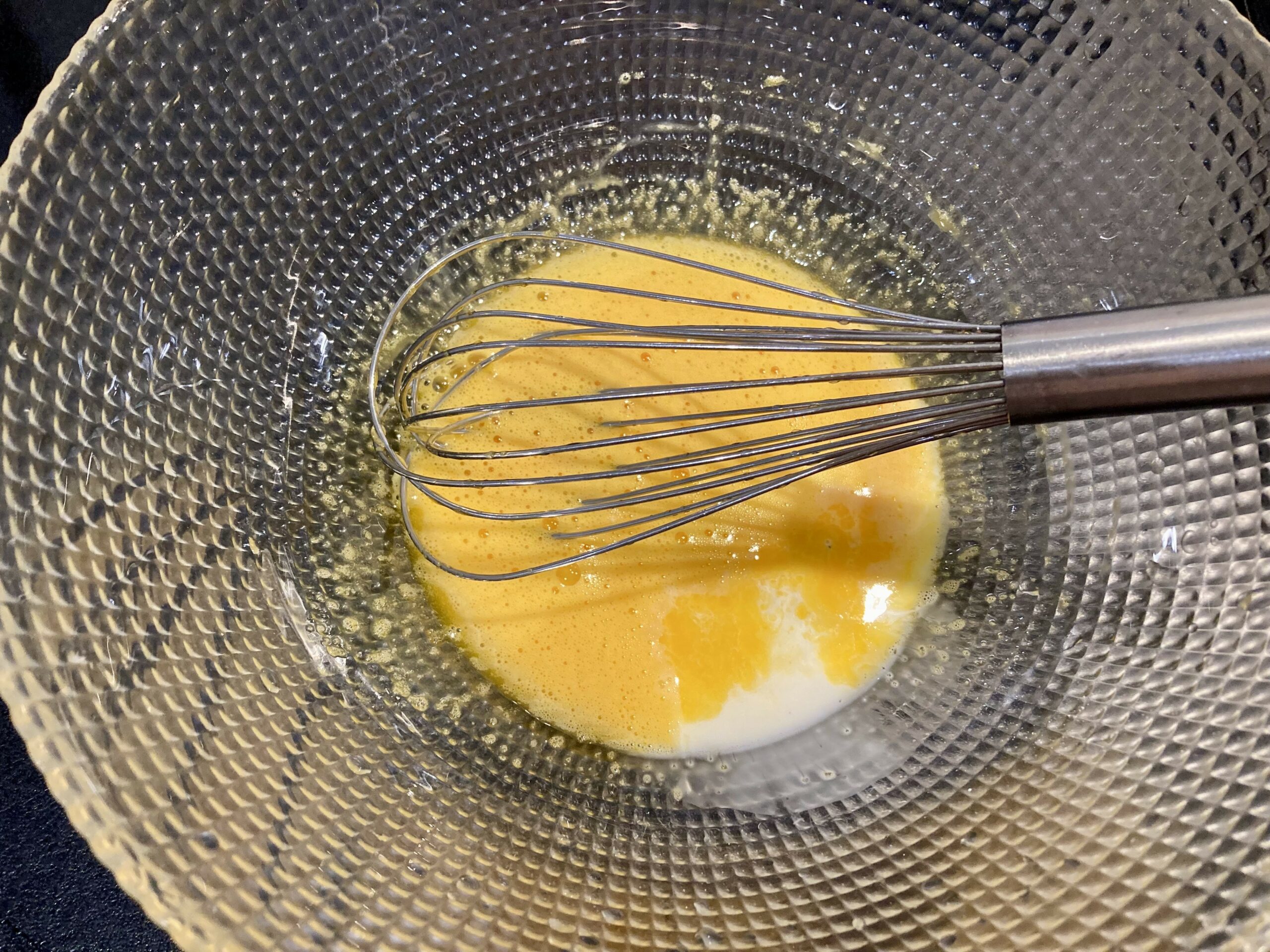 Ajoutez au mélange jaunes d’oeuf/sucre. Mélangez.