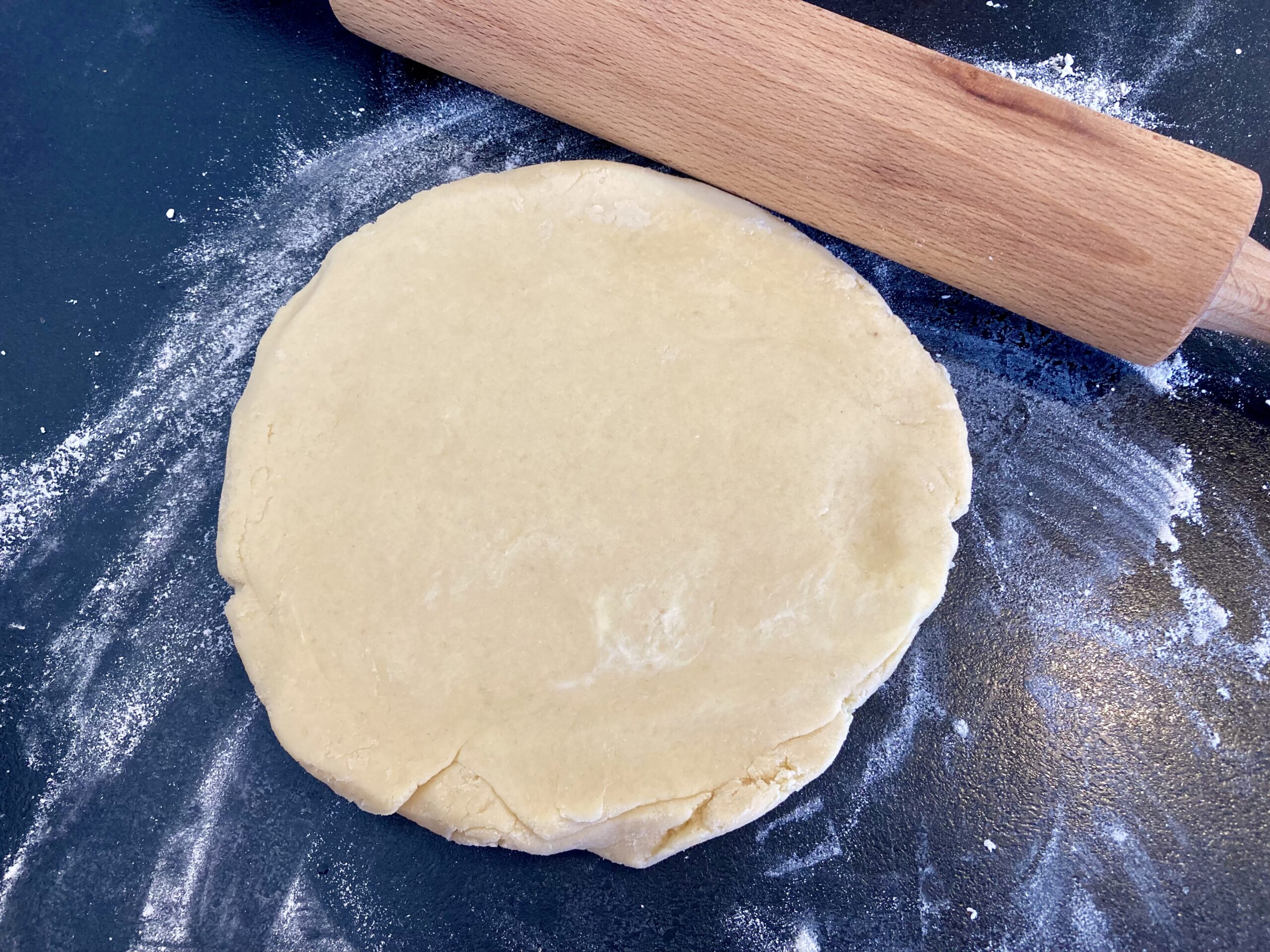 3. Etalez la pâte avec un rouleau à pâtisserie à la taille et l’épaisseur souhaitée. Transférez la sur une feuille de papier cuisson (pour cela enroulez la pâte sur le rouleau à pâtisserie et déroulez la sur la feuille de papier cuisson). Placez la dans votre moule. Retirez à l’aide d’un couteau les morceaux de pâte qui dépassent du moule. Piquez le fond de la pâte avec une fourchette pour éviter qu’elle ne gonfle lors de la cuisson.