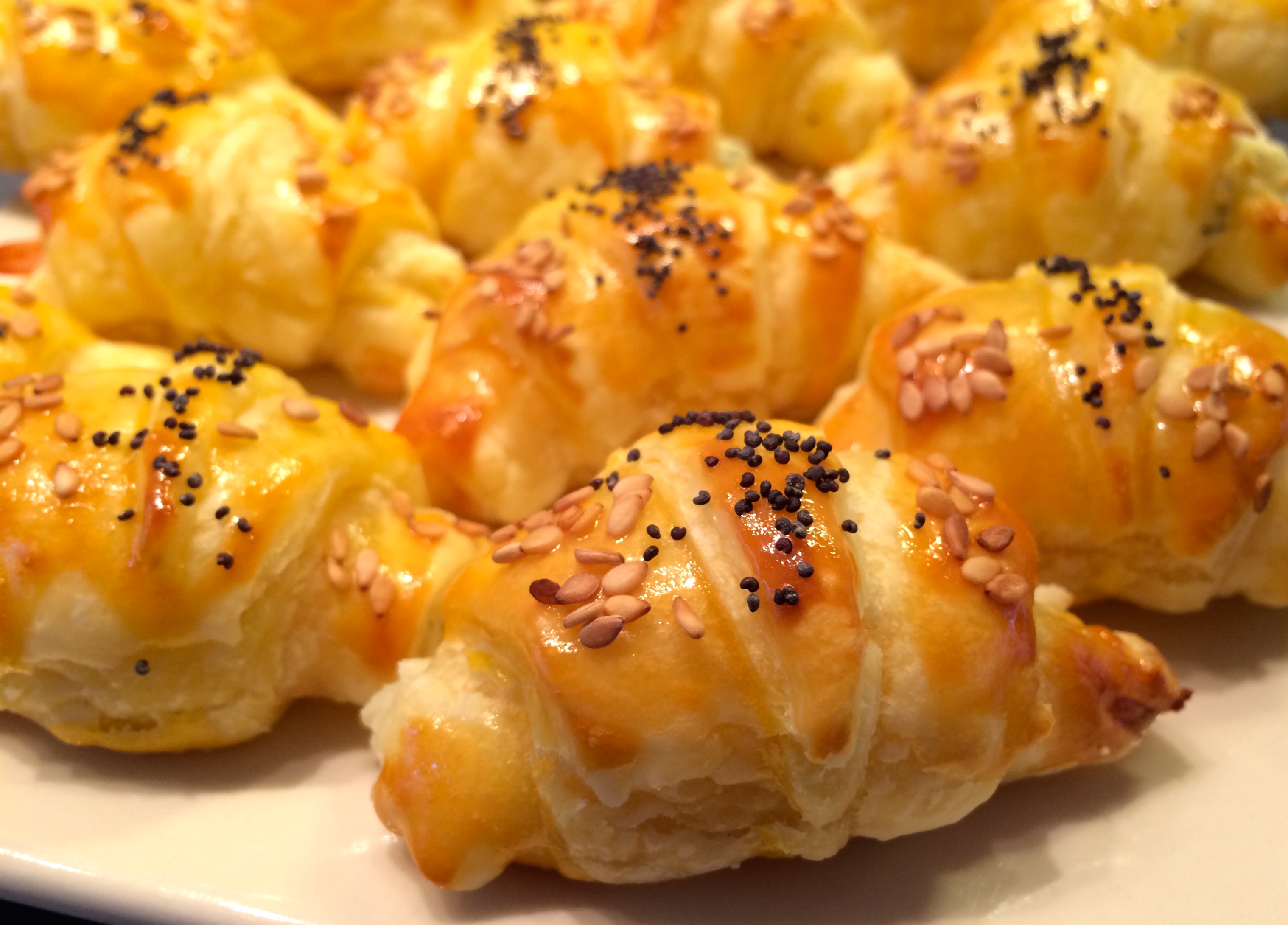 - Pour varier vous pouvez aussi réaliser des croissants apéro (pour voir la recette cliquez ici) ou des feuilletés roulés « palmier » ou « escargot » (pour voir la recette cliquez ici).