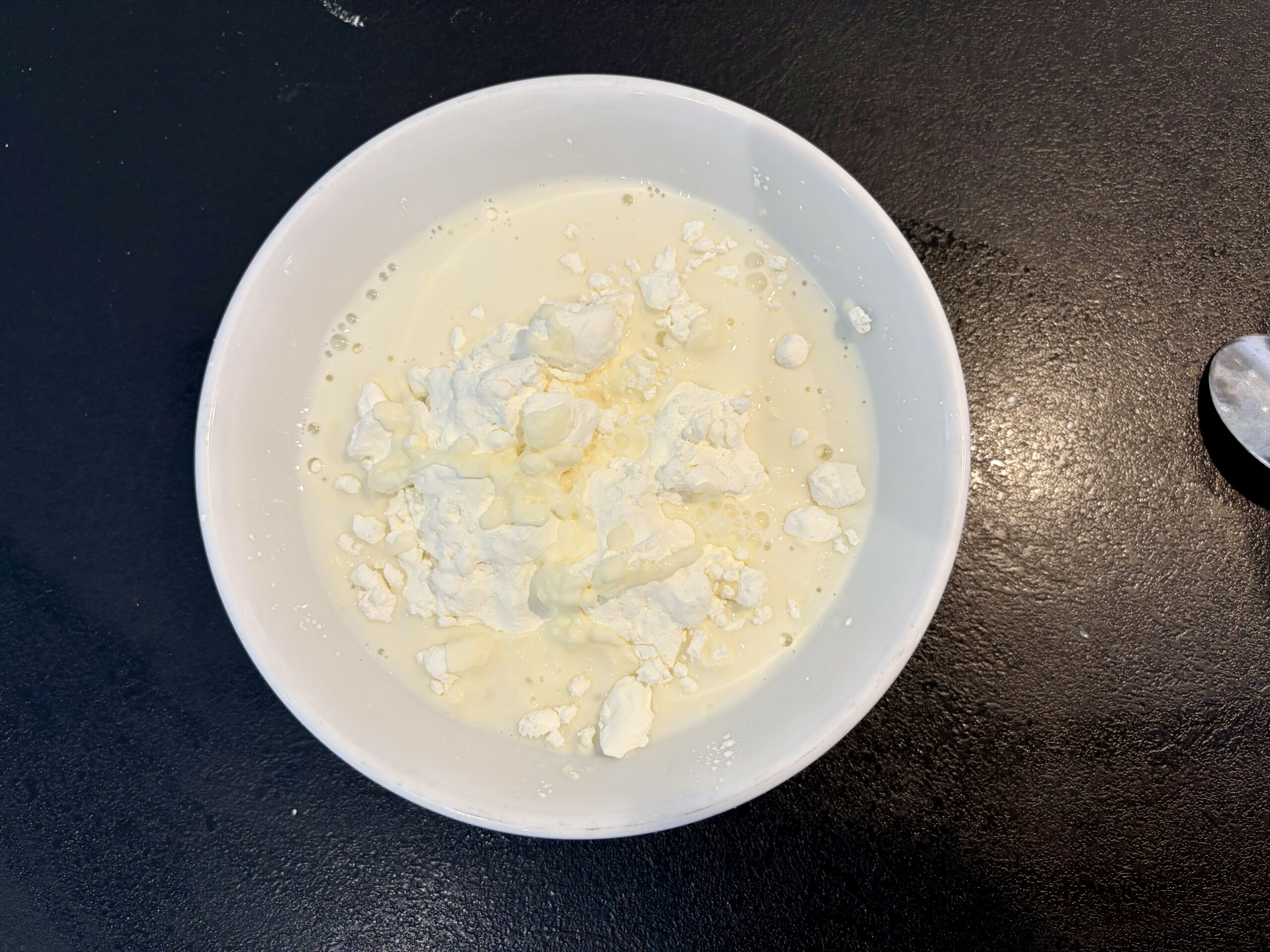 2. Mélangez (délayez) la maïzena avec 100mL (g) de lait.