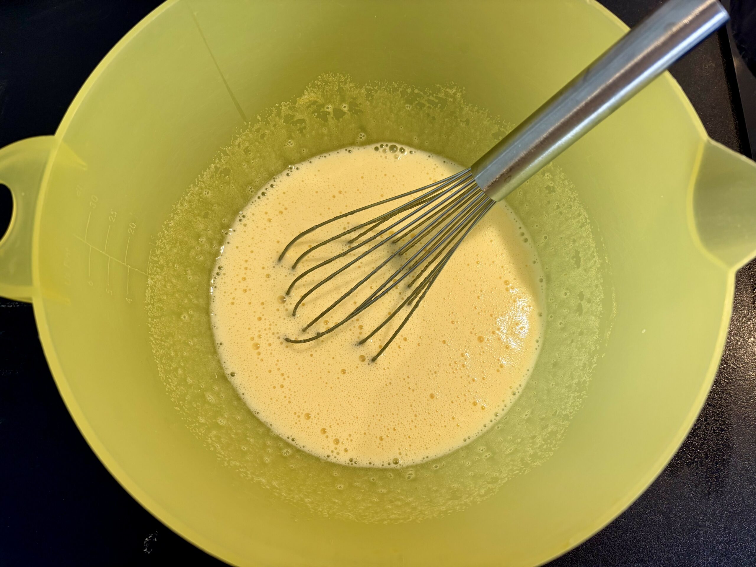 5. Ajoutez la maïzena délayée au mélange oeufs/sucre.