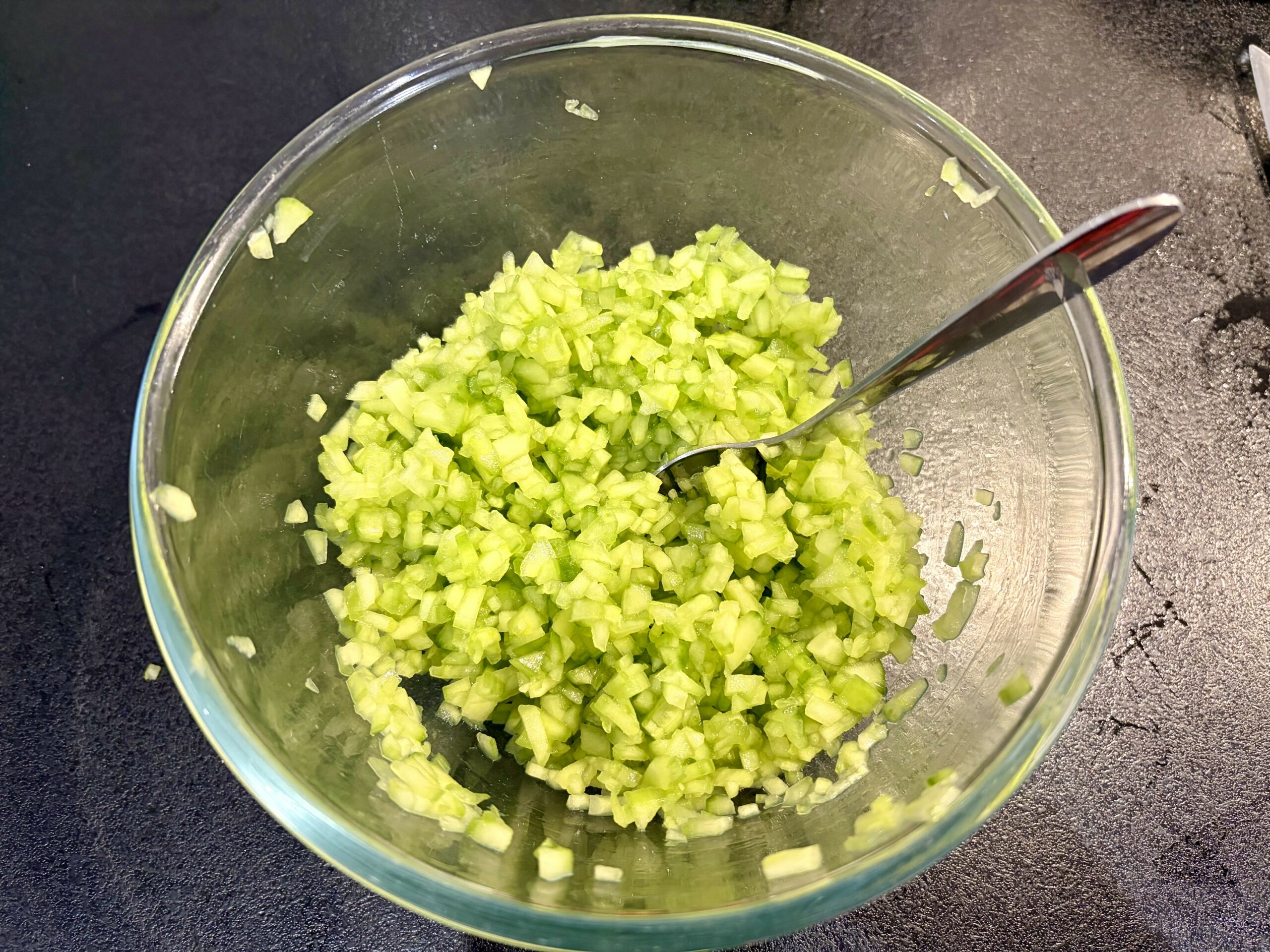 4. Ajoutez les morceaux de concombre. Mélangez.