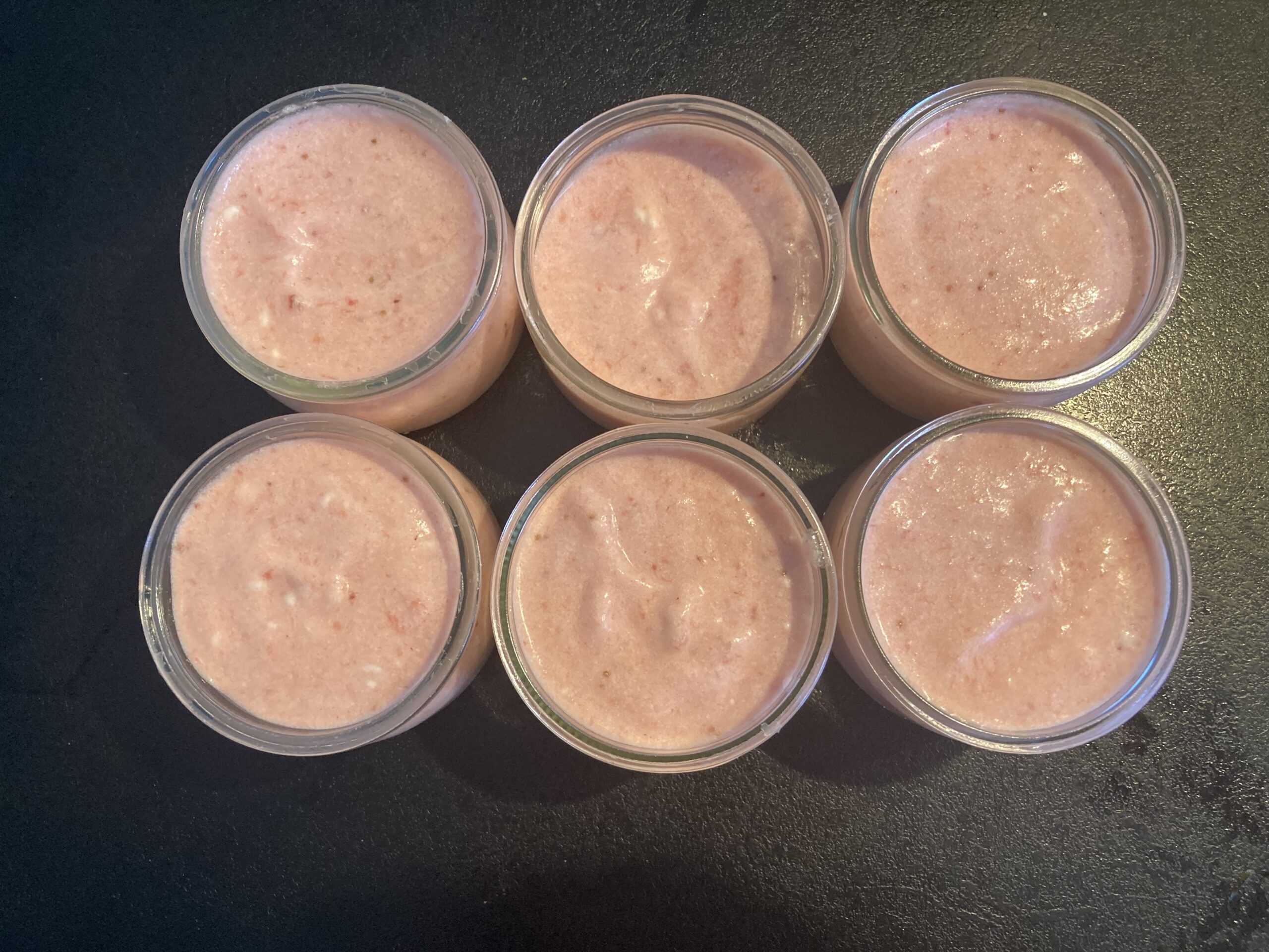 11.Versez votre mousse aux fraises dans des verres/petits pots et placez au frais pendant au moins 4 heures (l’idéal est de la préparer le matin pour le soir ou la veille pour le lendemain) pour que la texture devienne bien mousseuse!