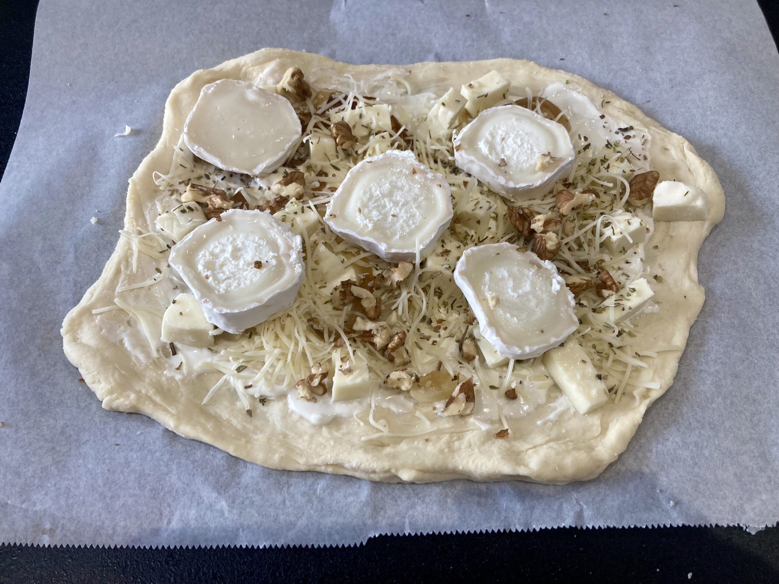 1 pâte à pizza achetée ou maison (pour voir la recette cliquez ici)