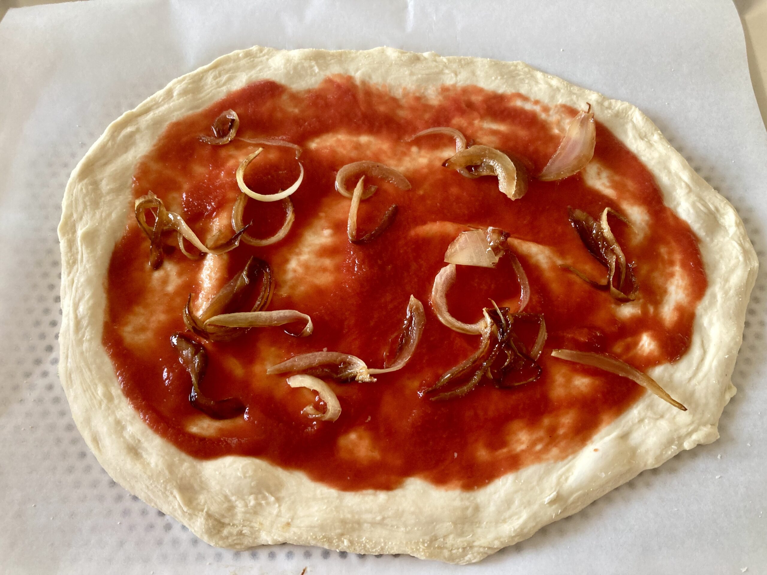 1 pâte à pizza achetée ou maison (pour voir la recette cliquez ici)