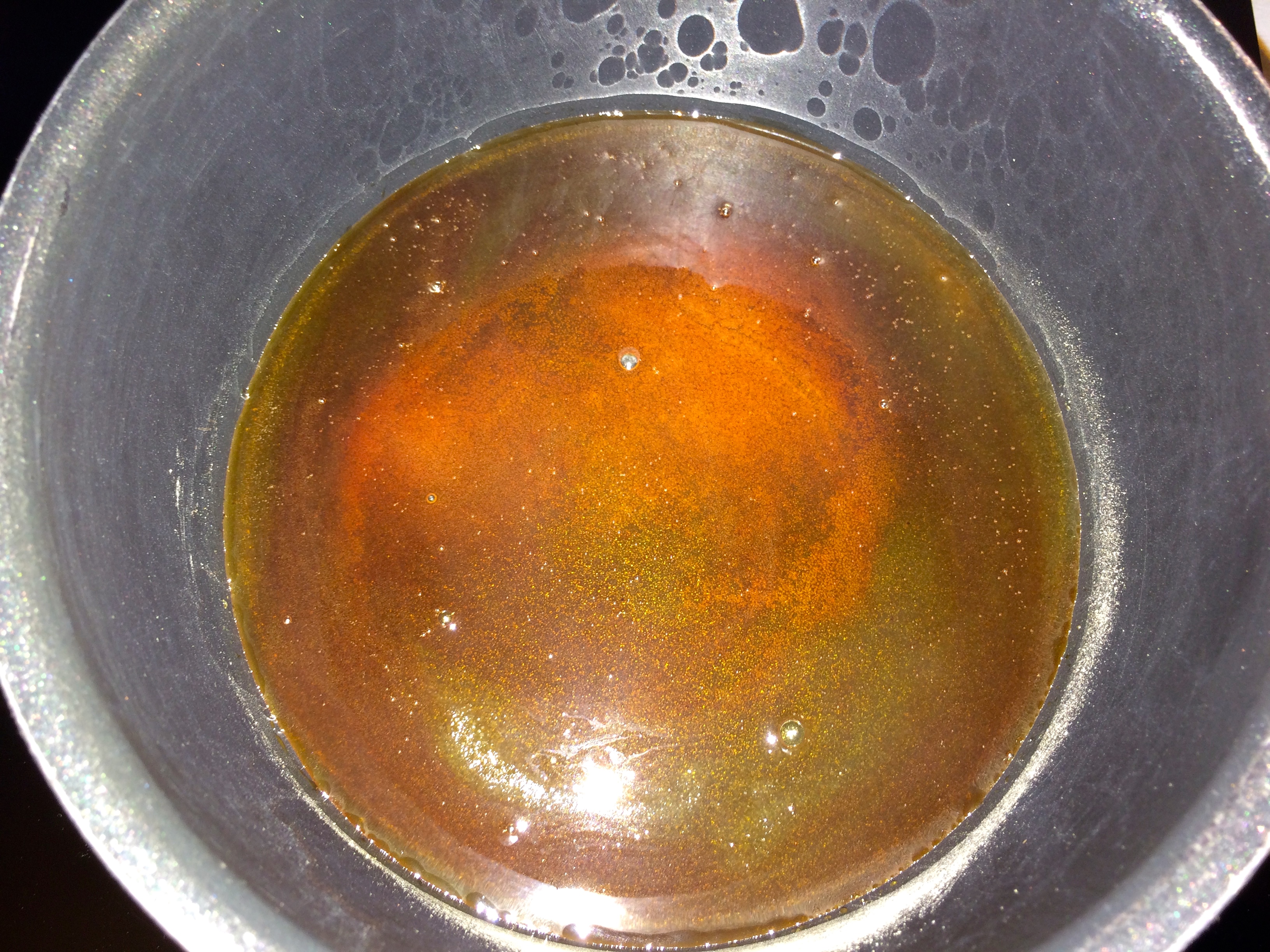Lorsque votre caramel est prêt et encore très chaud ajoutez 5cl d’eau bouillante. Pour éviter que le caramel ne colle aux ustensiles, faites doucement tourner la casserole par de petits mouvements circulaires. Replacez-la régulièrement sur le feu afin de ramener le mélange à ébullition, puis reprenez ces mouvements. Le caramel va se dissoudre sans former de grumeaux. En refroidissant le caramel va durcir (vous pouvez le remettre sur feu doux pour qu’il redevienne liquide).