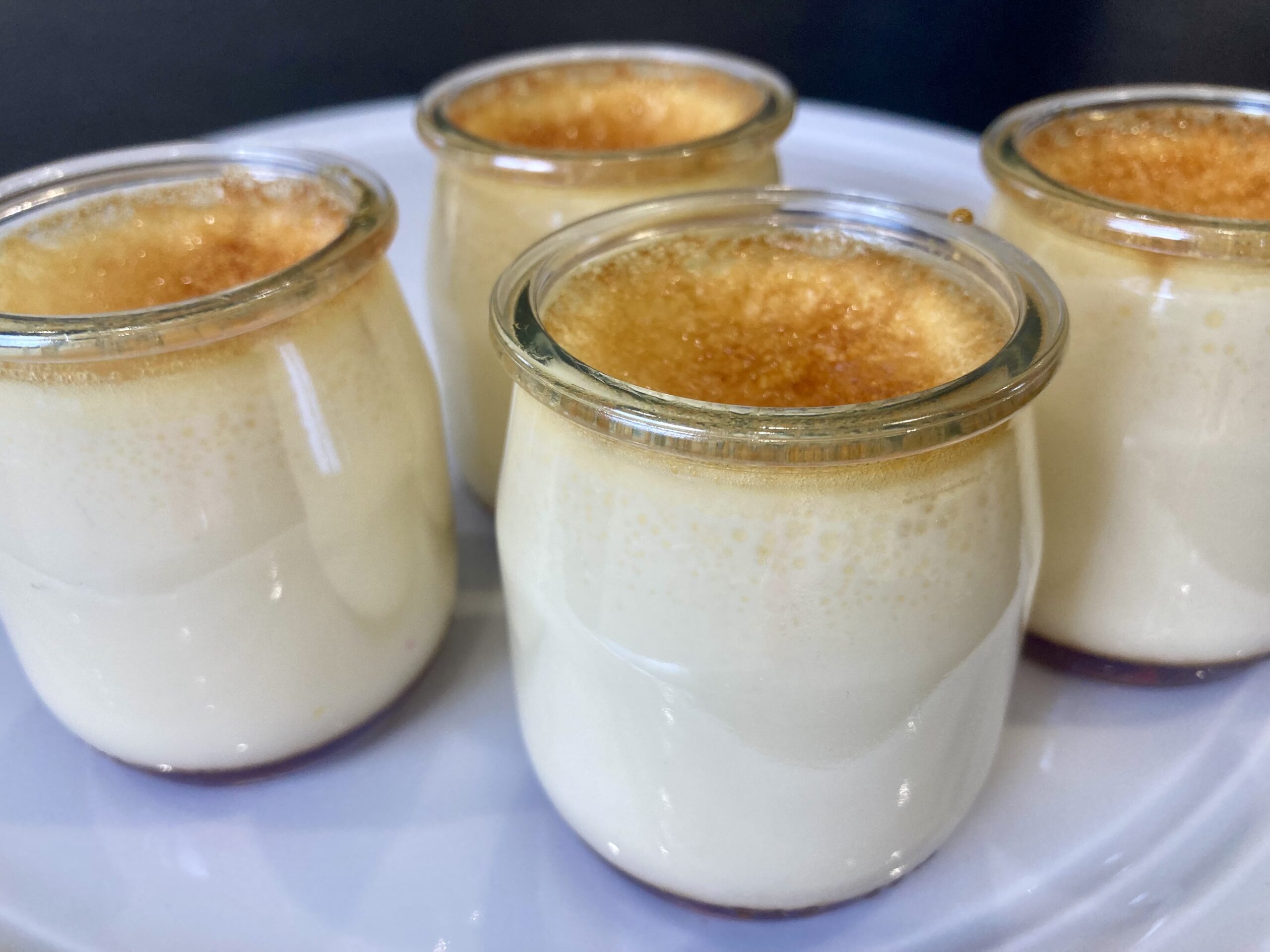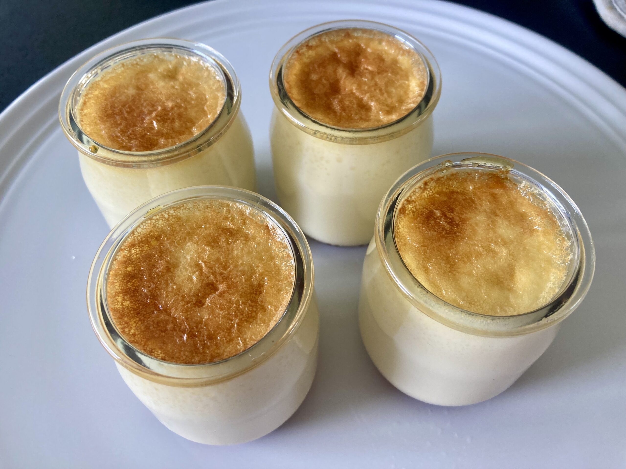 Prévoir un plat haut passant au four dans lequel rentre les pots de yaourts pour la cuisson au bain marie.