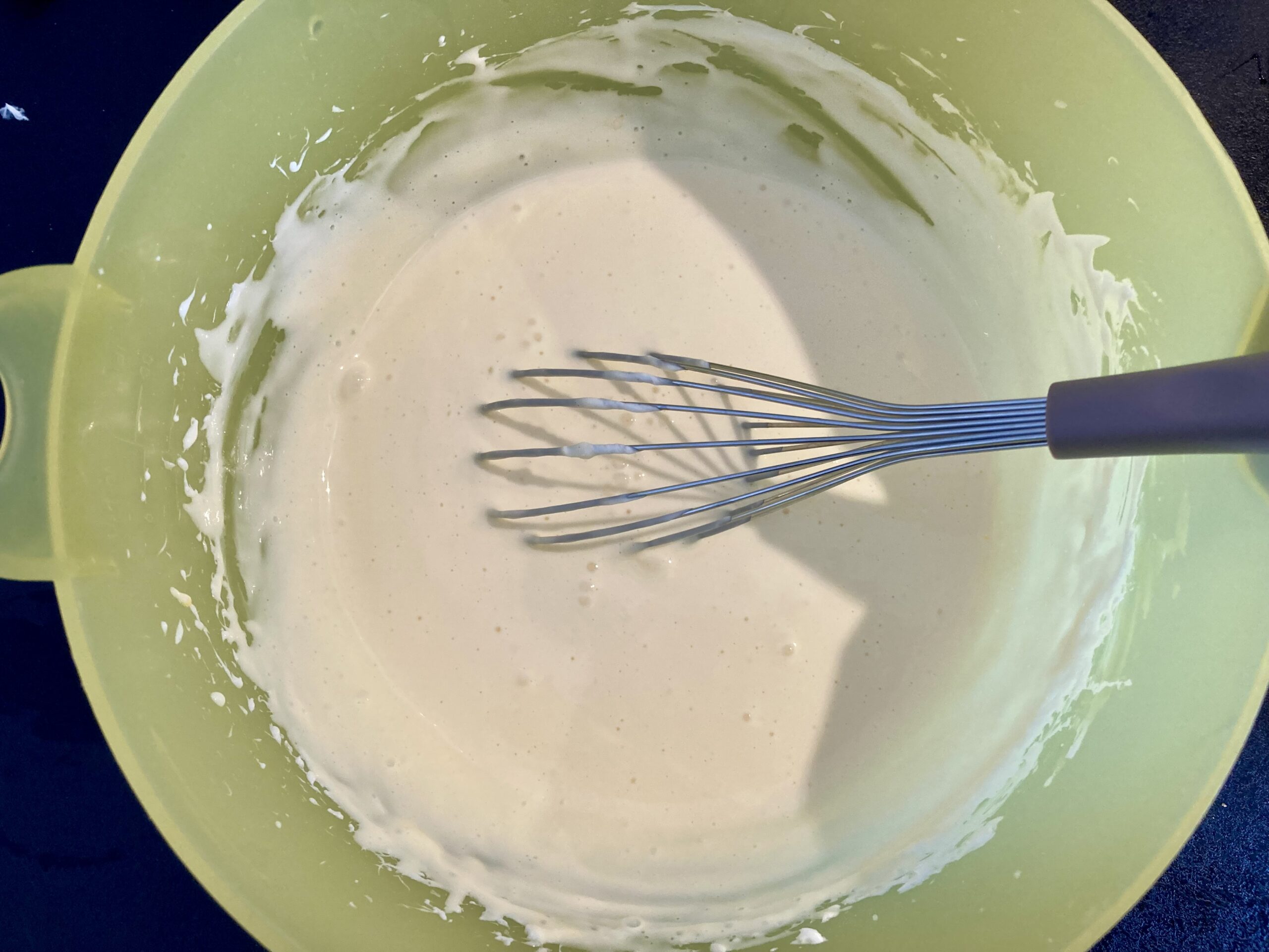 8. Ajoutez les oeufs un à un. Fouettez légèrement entre chaque ajout.
