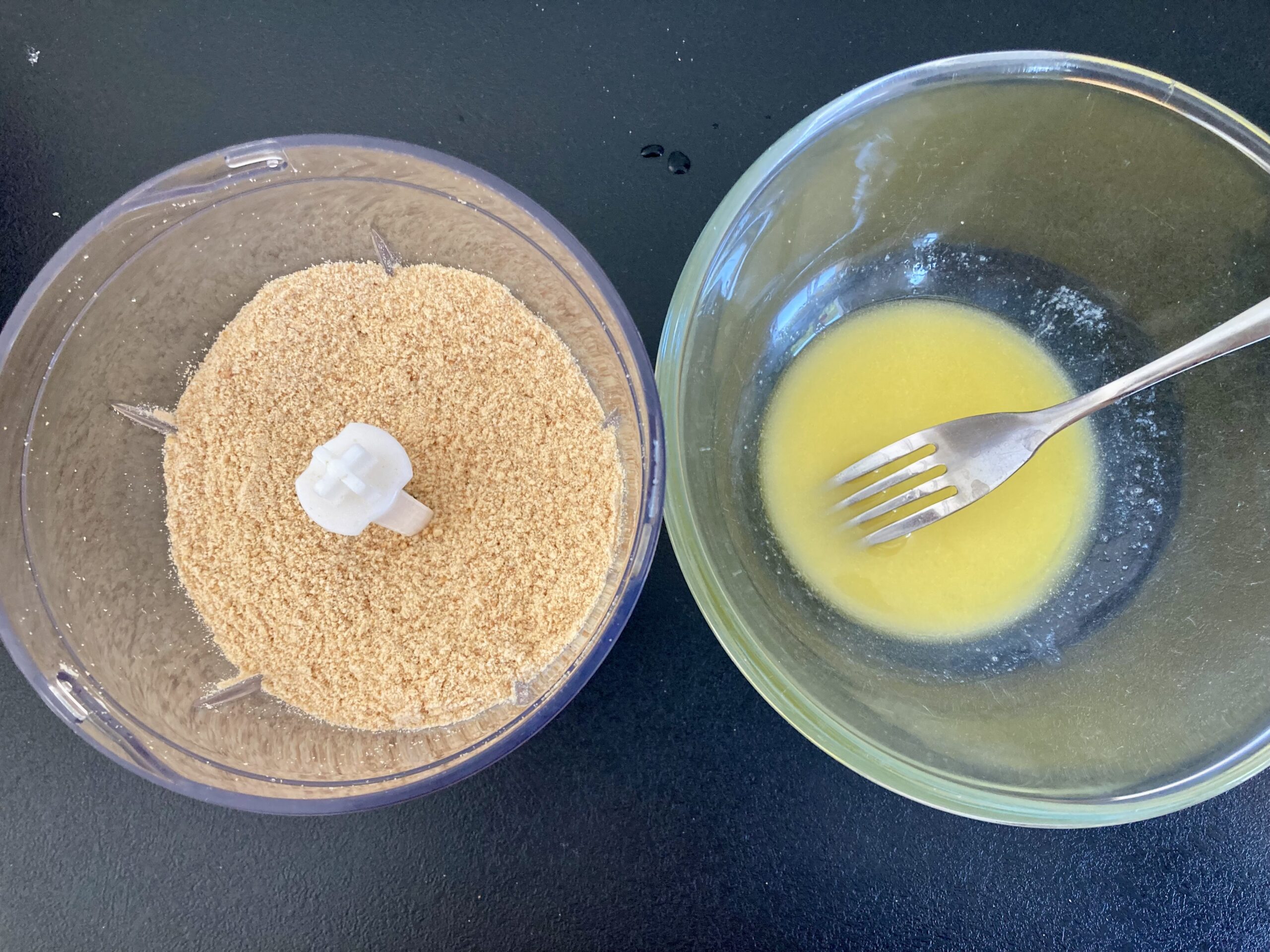 3. Faire fondre le beurre au micro-ondes ou dans une casserole. Ajoutez le beurre aux petit beurre mixés et mélangez pour incorporer le beurre.