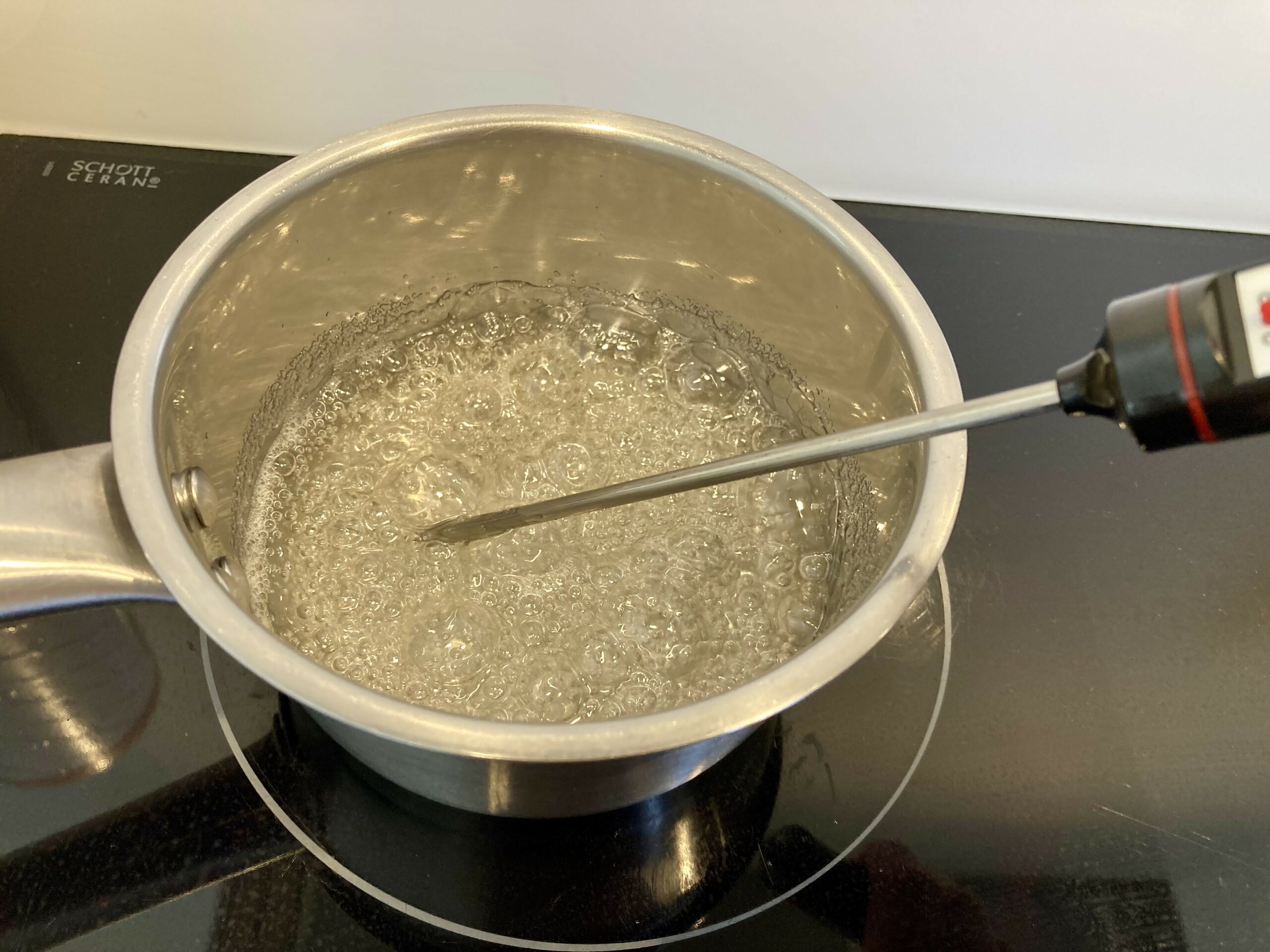 - Dans une casserole ajoutez 150g de sucre semoule et 40g d’eau.