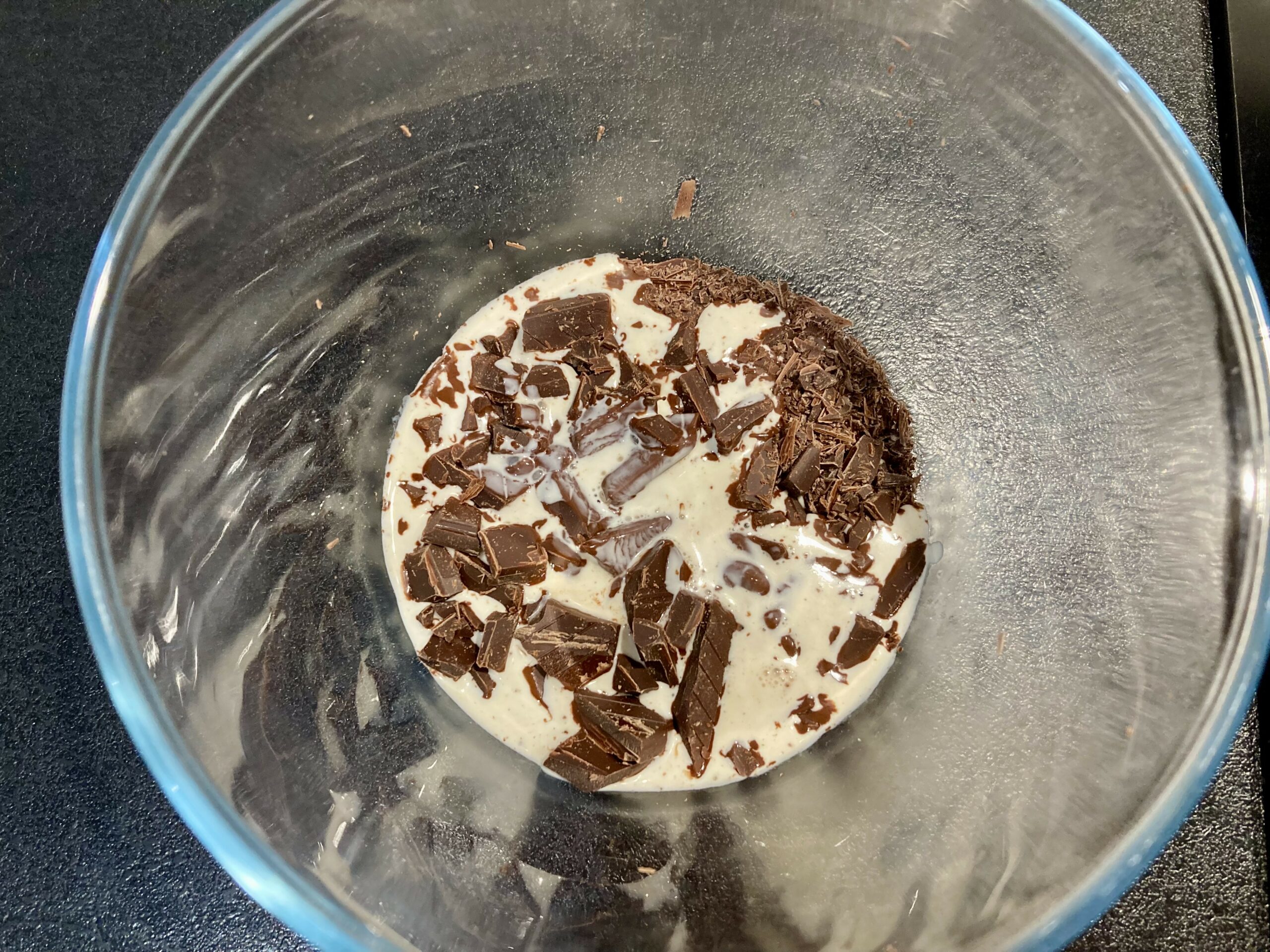 - Hachez le chocolat en petits morceaux à l’aide d’un couteau.