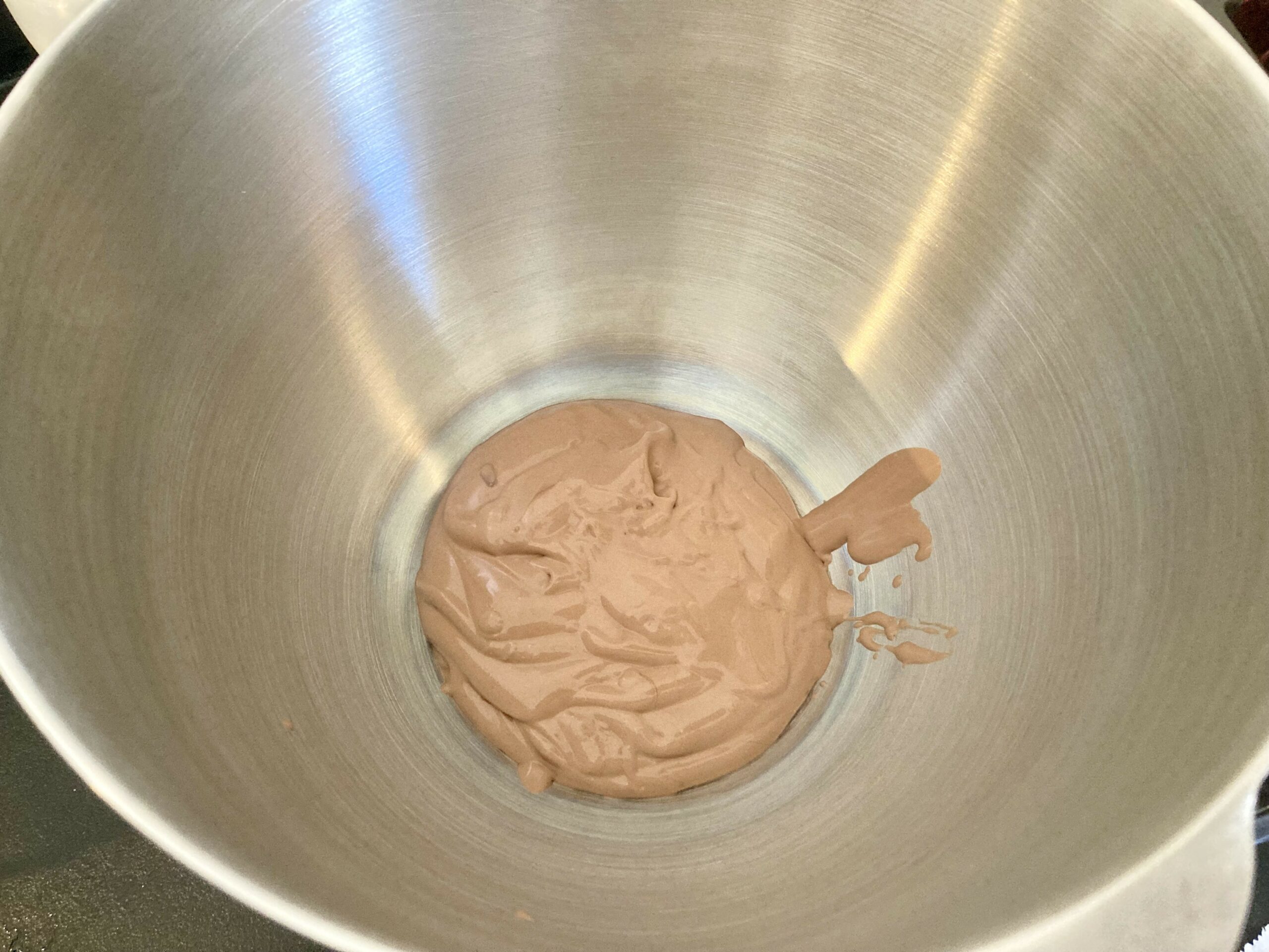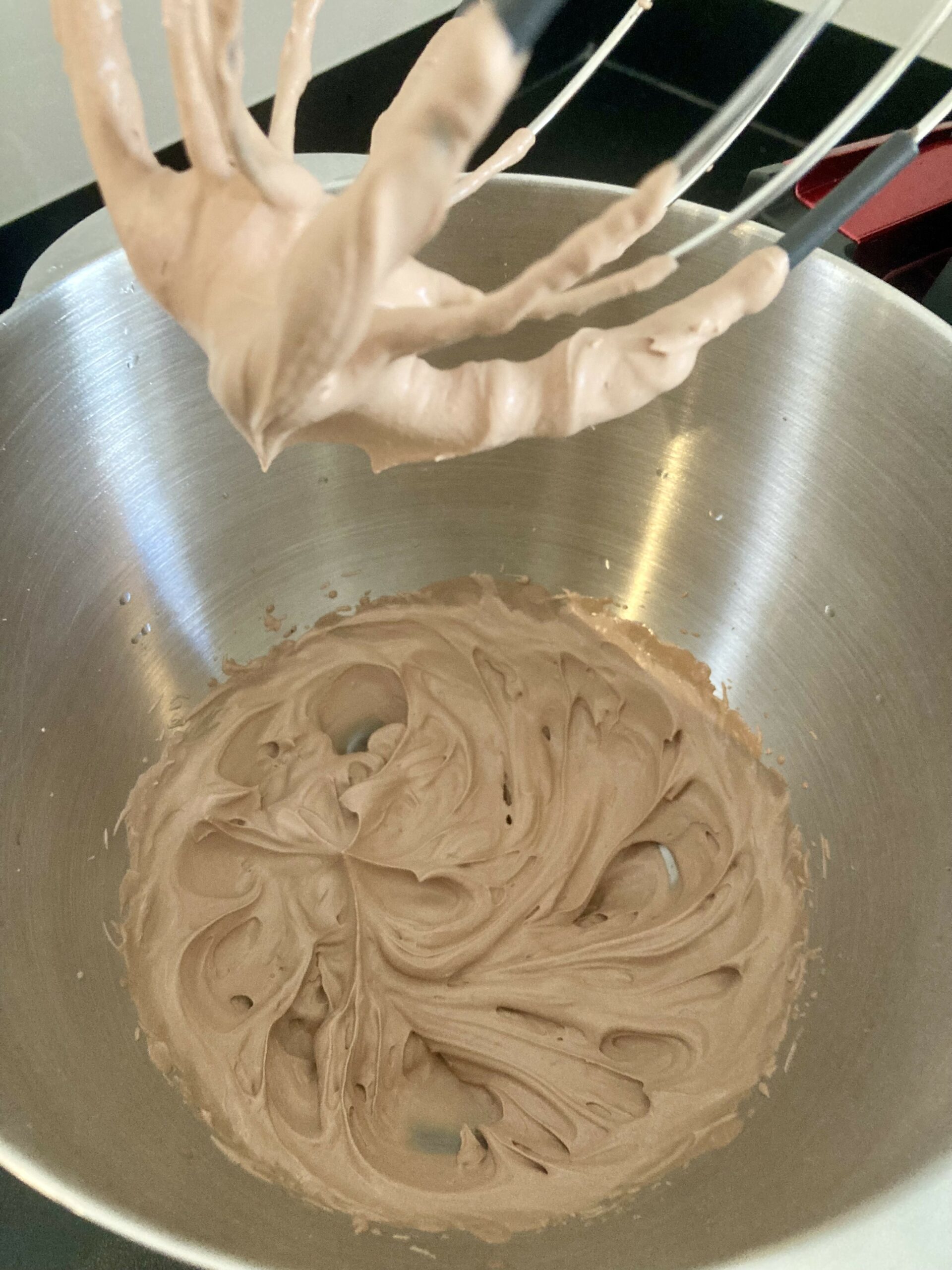 - Ajoutez la crème liquide restante froide. Mélangez.