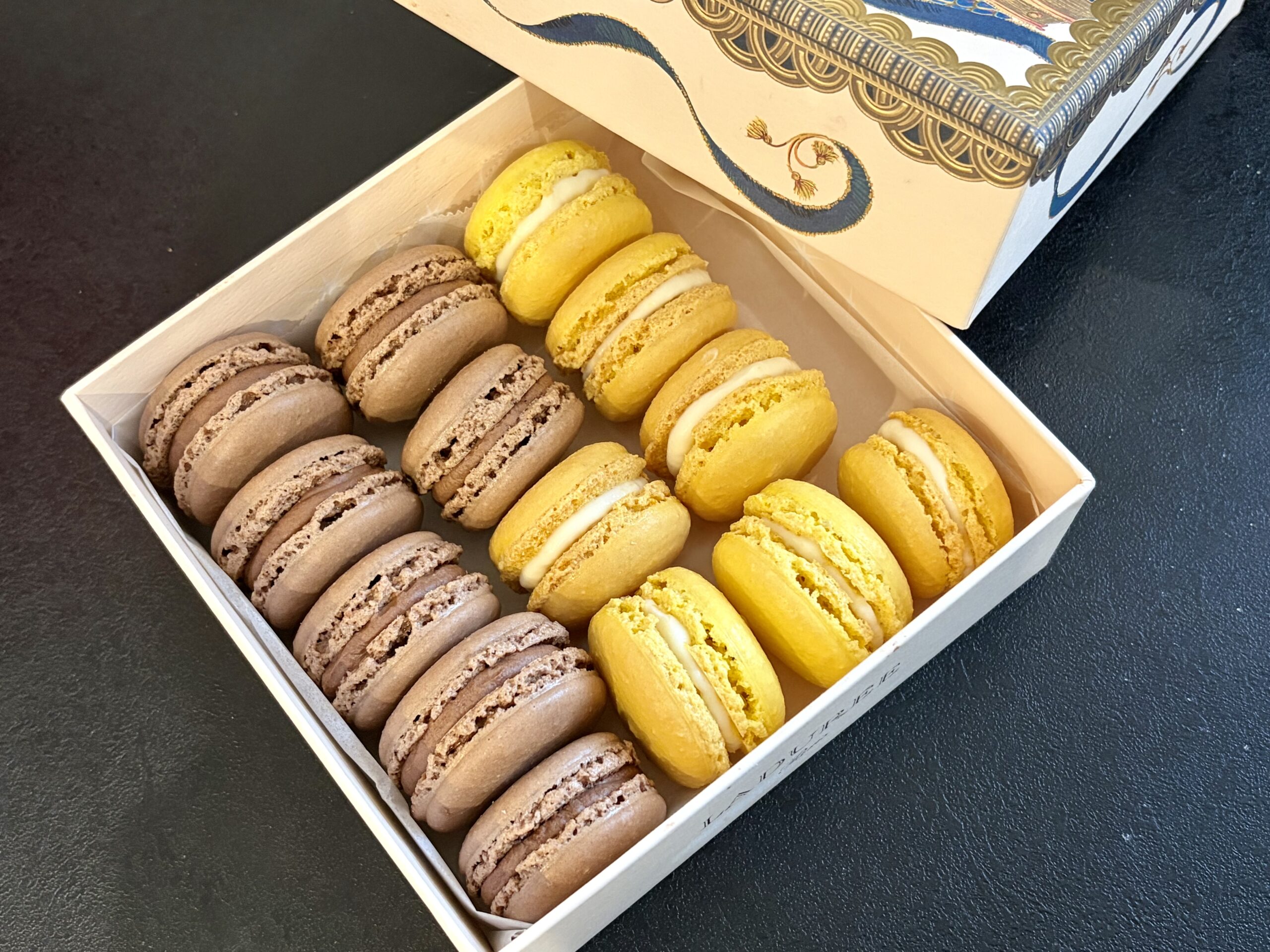 - Ajoutez 10g de cacao en poudre non sucré lors de l’étape 2 de la recette dans le tant pour tant (poudre d’amande + sucre glace) avant de mixer.