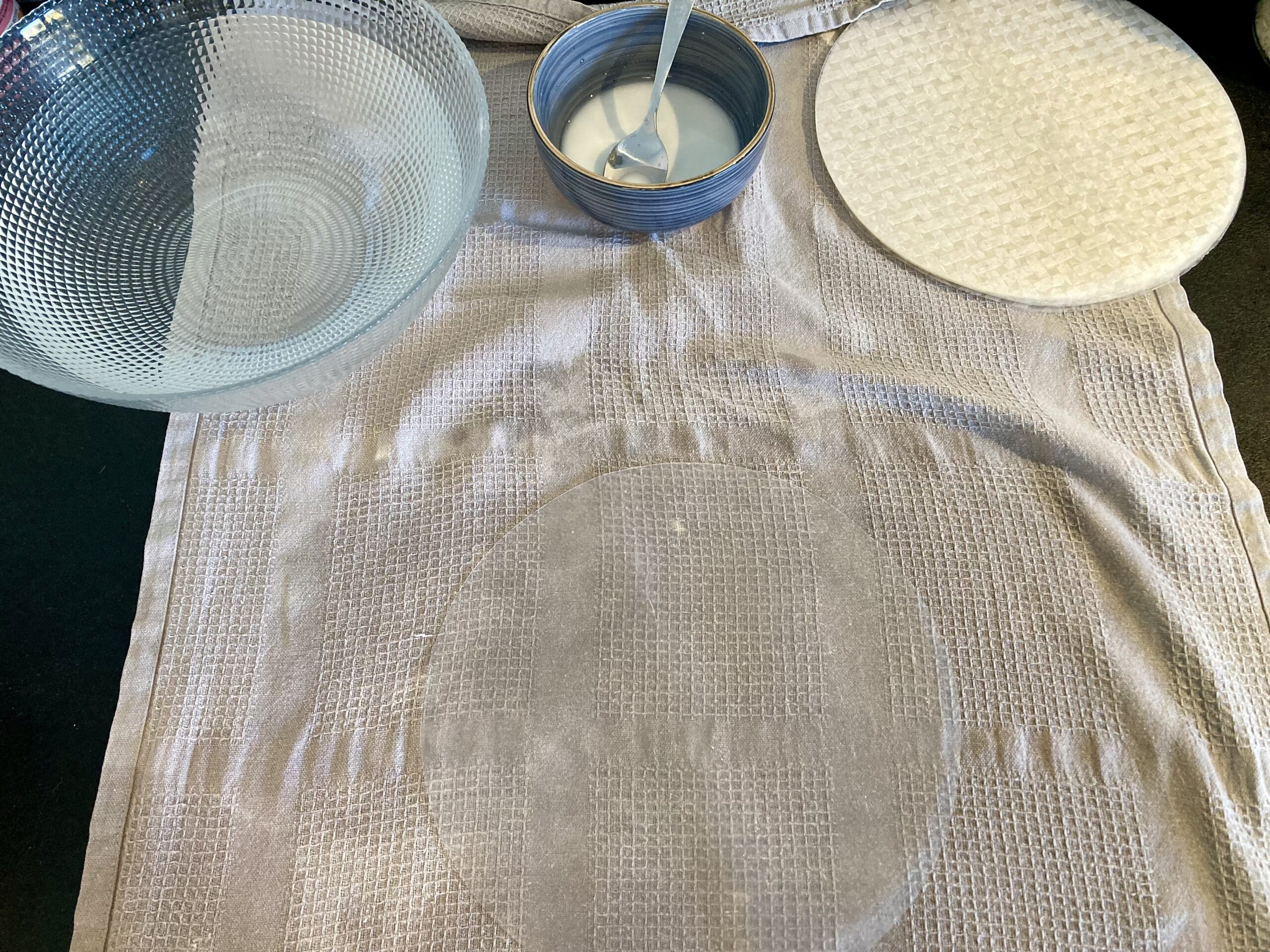 - Dans un grand saladier ajoutez de l’eau tiède. Humidifiez un torchon propre.