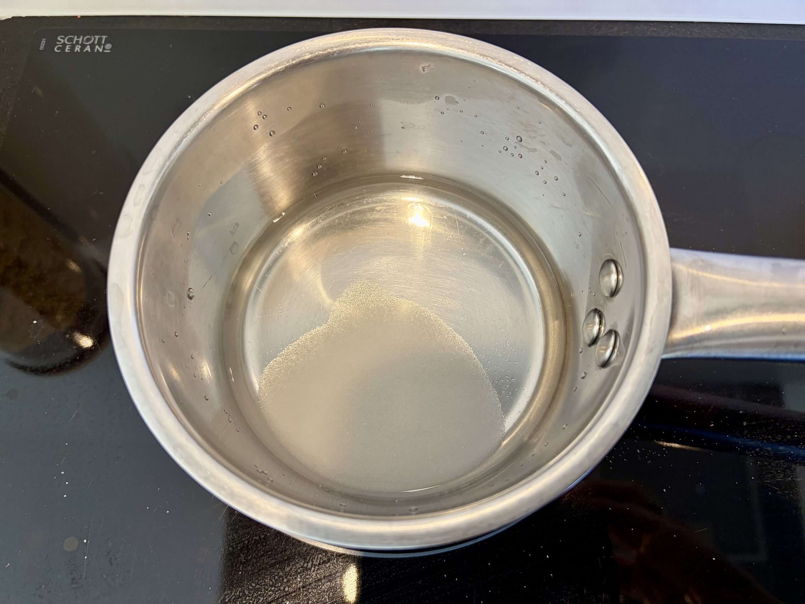 1.Dans une petite casserole ajoutez l’eau et le sucre.