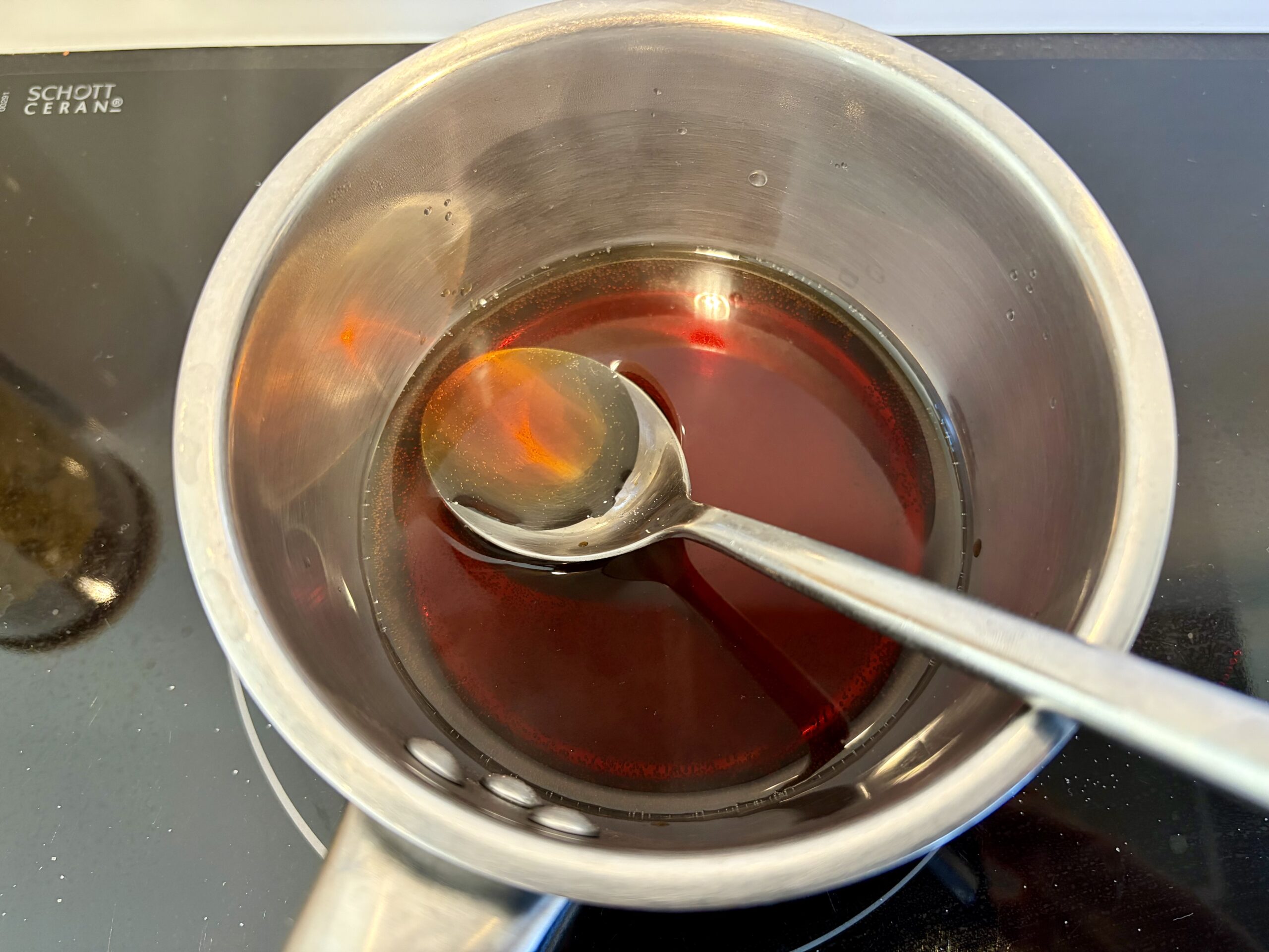 Chauffez sans porter à ébullition et remuez jusqu’à ce que le sucre soit dissout.