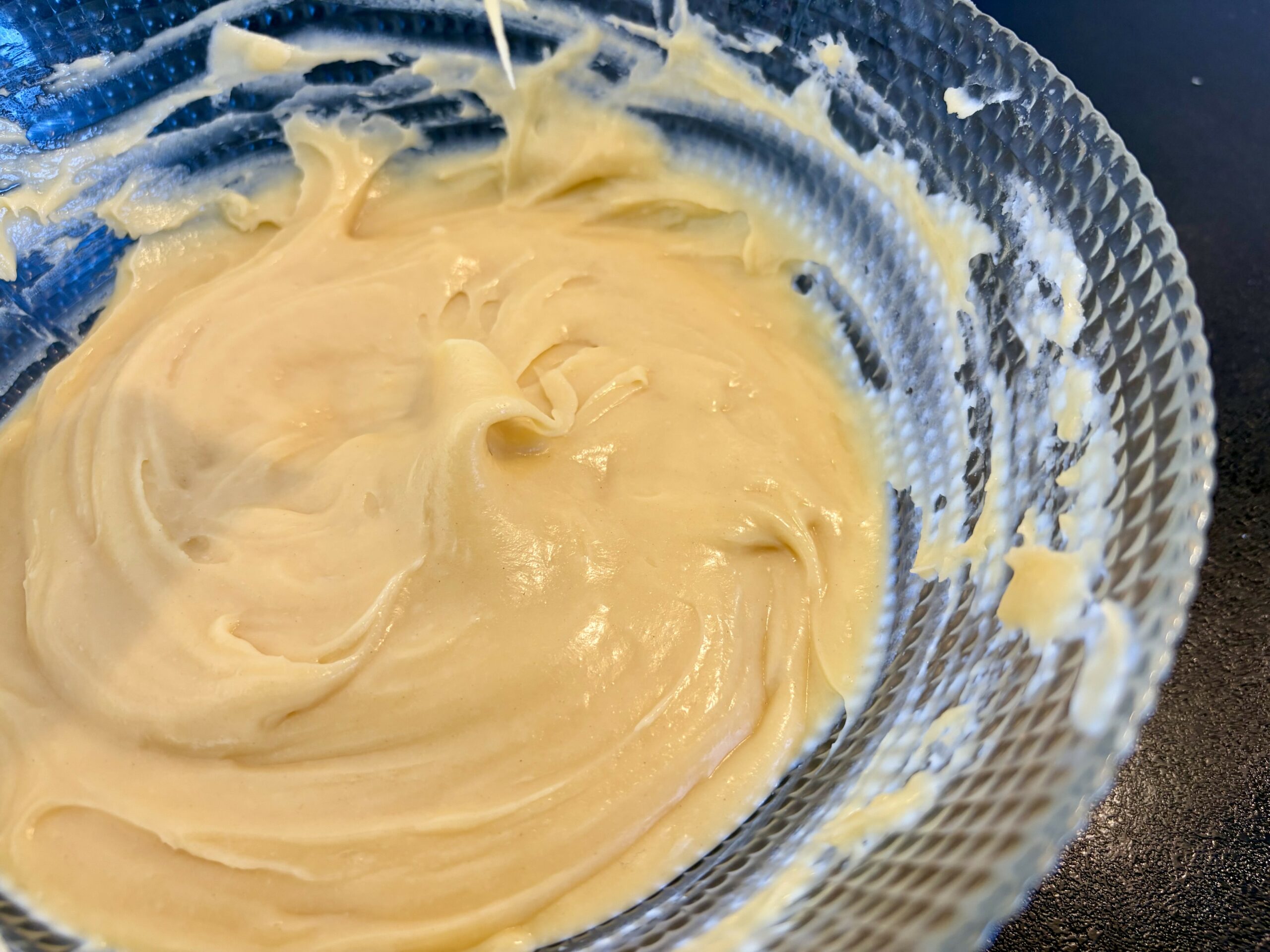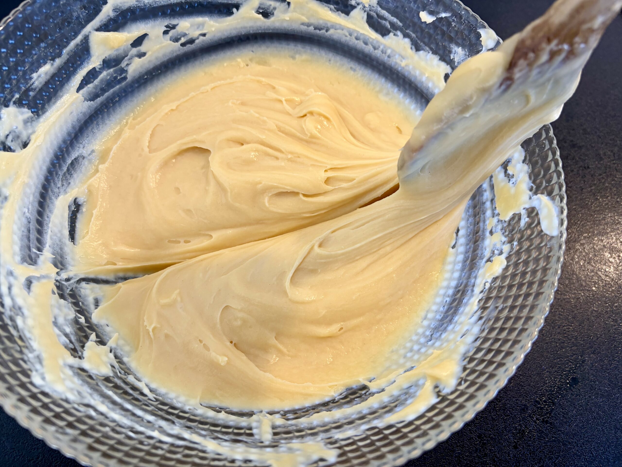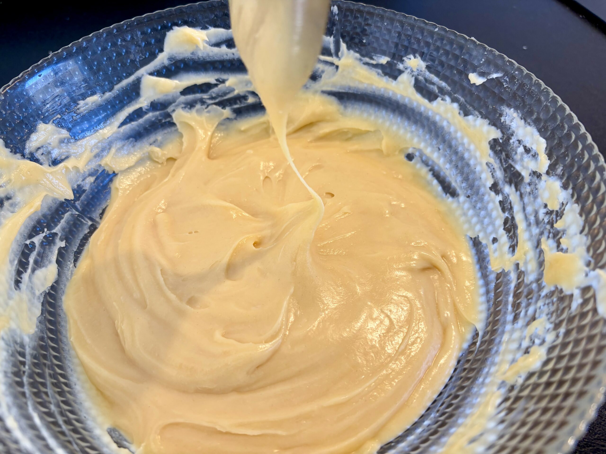 - Et/ou quand vous tracez un sillon avec la spatule dans la pâte celui-ci se referme doucement (il ne disparait pas mais se referme doucement).